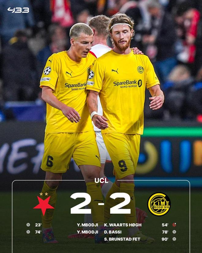 雷速体育9月18日宣 稍早前结束的欧冠联赛阶段第1轮比赛中,博德闪耀客场2-2战平布拉格斯拉维亚。