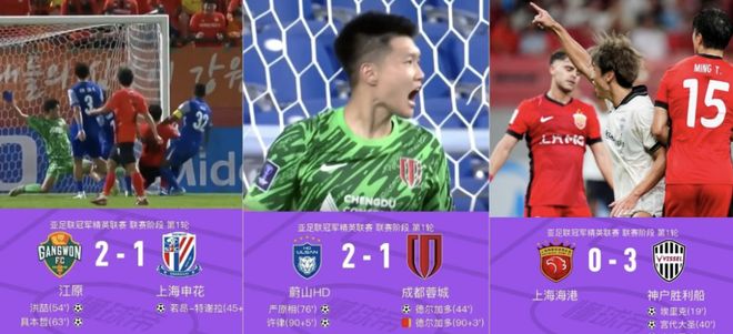 三支代表中超出战亚冠的球队上海申花、成都蓉城和上海海港,均遭遇失利。