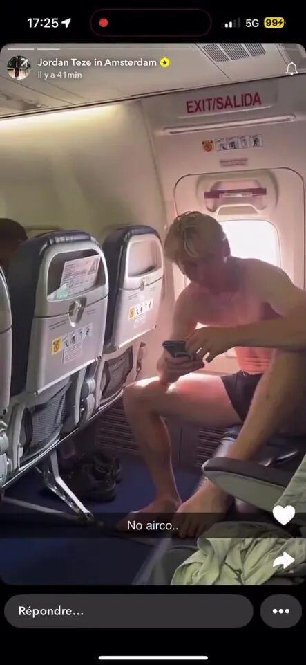 荷兰球星乔丹·泰泽拿出手机,记录下这令人难以置信的一幕。这位25岁的球员将视频分享到社交媒体上,画面中全队几乎只穿内裤,以避免中暑。 随后,球员们未换衣服就下机,半裸地站在跑道上。