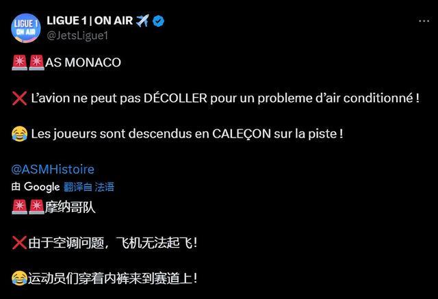 北京时间9月19日凌晨00:45,欧冠首轮比赛, 法甲球队摩纳哥将奔赴比利时客场挑战布鲁日。距离开赛仅剩不到18小时,他们依旧没有抵达比赛目的地。因为他们飞往欧冠首战的航班被迫取消了。