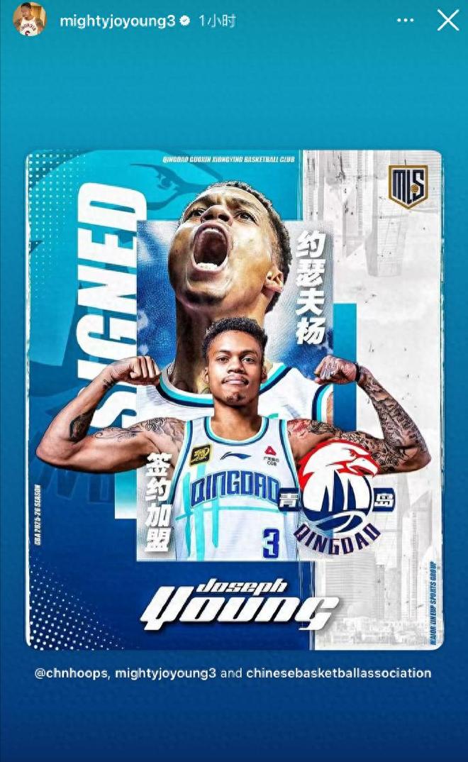 约瑟夫-杨在个人社交媒体官宣,加盟青岛男篮!