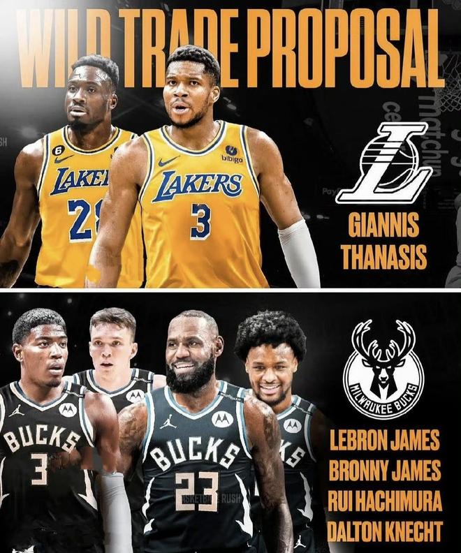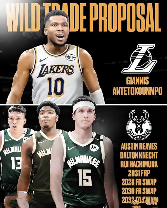 目前湖人给出的交易方案有两种:其一,湖人用里夫斯、八村塁、2031年首轮选秀权以及2028、2030、2032年的首轮选秀权互换来交易字母哥和他哥,看似7换2的交易诚意满满,但显然这还不够!作为当下NBA联盟最强的大前锋,字母哥绝对不止四首轮(里夫斯值2首轮,克内克特1首轮)。