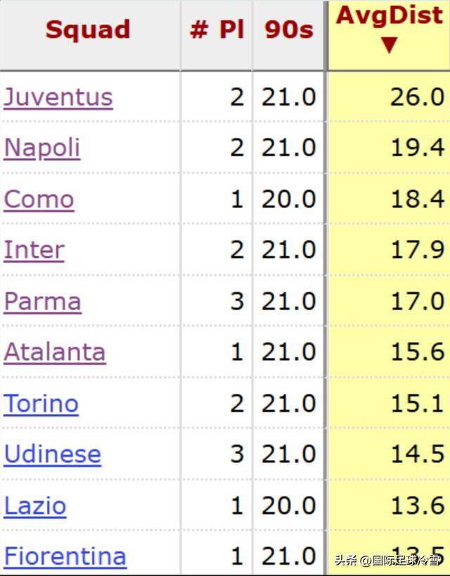 国米意甲第2轮输给乌迪内,第3轮输给尤文时,相关数据都超过了30码(27.5米)。10月28日,国米客场对阵那不勒斯时,相关数据是28.0码(25.6米)。